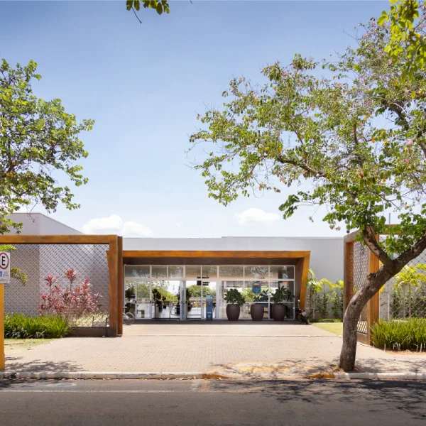 O projeto organiza o programa de necessidades em uma planta térrea que prioriza a fluidez e a setorização inteligente dos espaços.