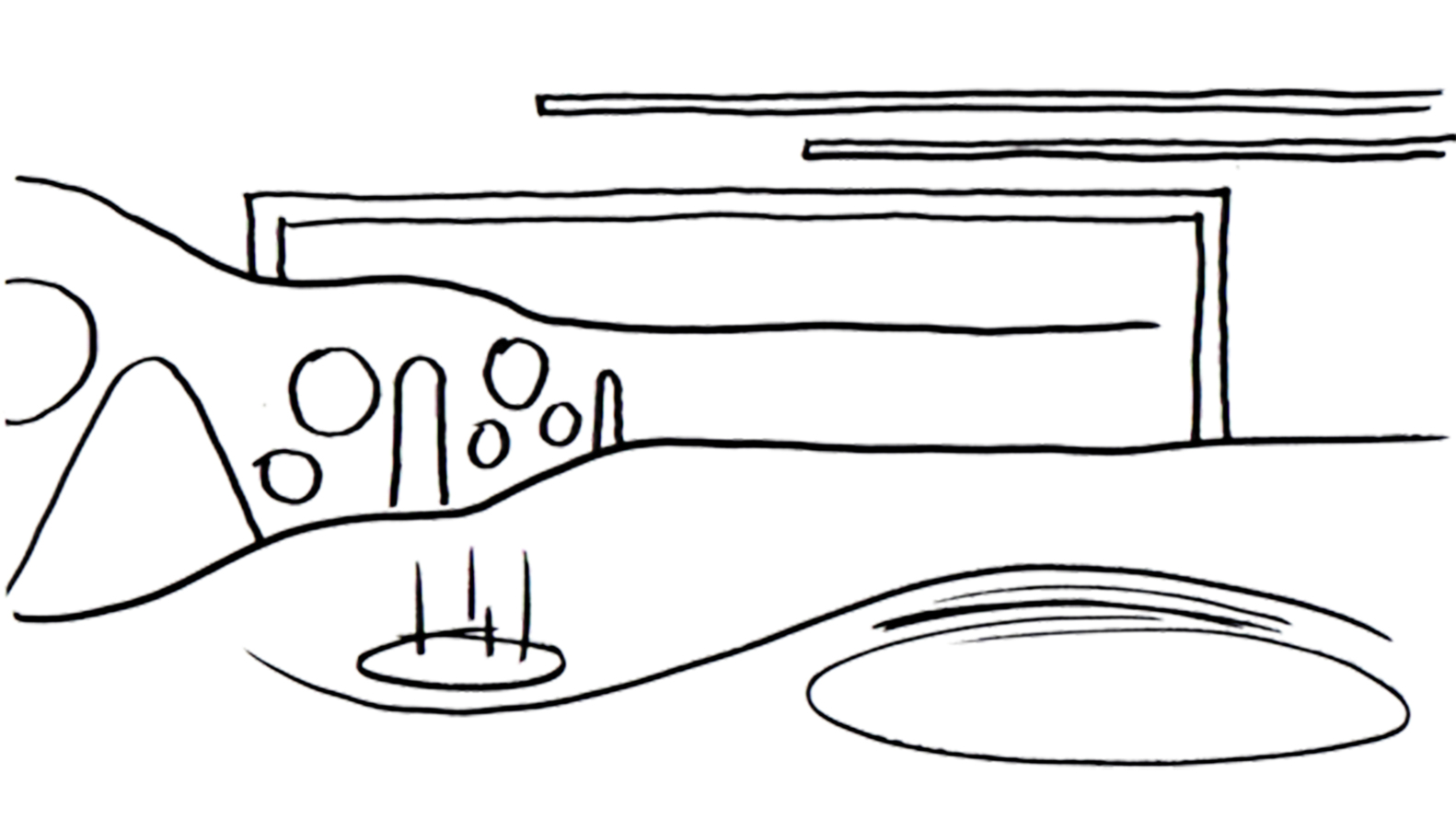 Sobre as salas de aula desenvolve-se um pátio para atividades diversas: pista de corrida, amarelinhas, rampa de escalada e outras brincadeiras ocupam esse nível superior. A solução mais engenhosa, porém, está nos tubos de concreto com vidro na face superior, que conduzem luz natural às salas inferiores e, simultaneamente, criam aberturas zenitais que permitem aos alunos observarem suas próprias salas de aula de cima para baixo, oferecendo literalmente uma nova perspectiva sobre seu espaço de aprendizagem.