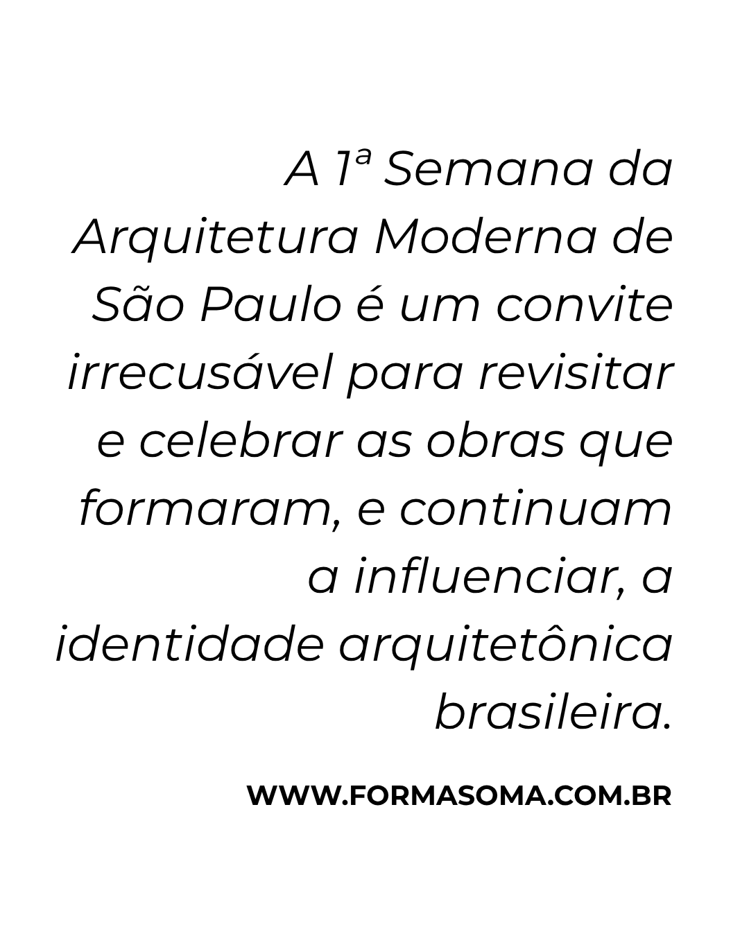 O modernismo brasileiro inventou novas formas de habitar os trópicos, criou espaços mais democráticos e integrados, e demonstrou que arquitetura de qualidade não é privilégio, mas direito. Esta Semana é um convite para que paulistanos e visitantes reconheçam, nas linhas puras e nos espaços generosos destas residências, a expressão máxima de um período em que o país ousou imaginar futuros melhores através da arquitetura.