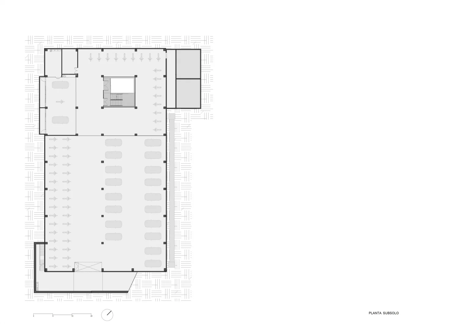 Diferente dos outros pavimentos, o subsolo possui o mínimo de entrada de luz e troca de ar externo possível, tornando-o mais estanque e naturalmente refrigerado, um ambiente propício para conservação.