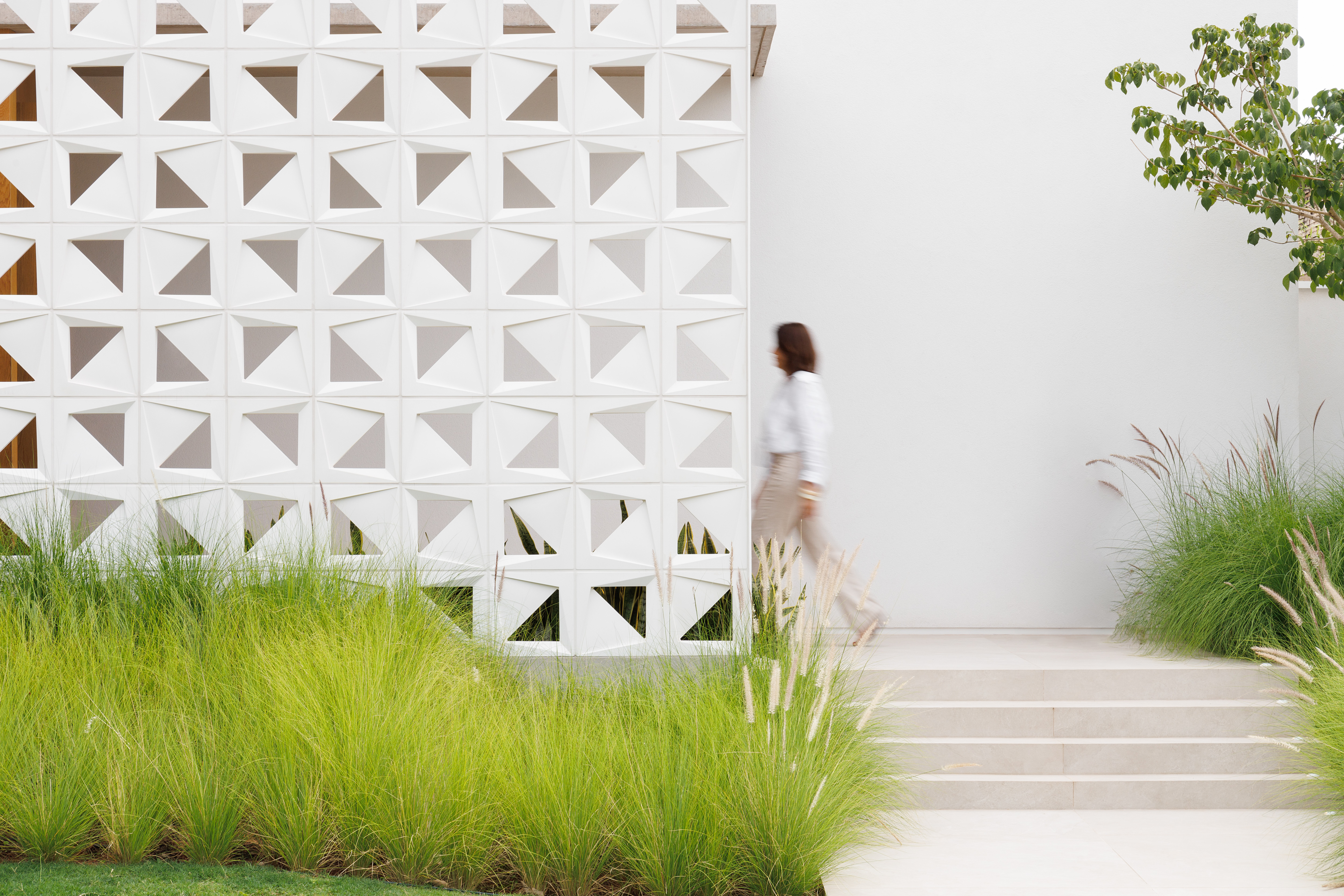 O projeto Cobogó materializa a busca pela essencialidade. Desenvolvido por Joice Pretel em Bauru - SP, a residência parte de um princípio formal claro — o paralelepípedo branco — e mantém-se fiel a essa linguagem desde a concepção até a execução final.