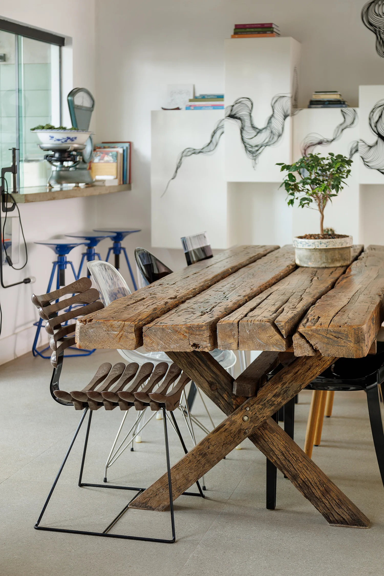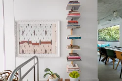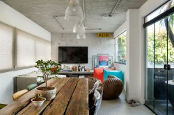 As cores vibrantes, cuidadosamente selecionadas, dançam com a luz natural e se harmonizam com os móveis, criando uma atmosfera que é ao mesmo tempo contemporânea e atemporal. É uma casa cheia de bossa, onde cada canto revela uma surpresa visual que encanta e convida à contemplação. Os detalhamentos sutis, em perfeita sintonia com a essência artística dos ambientes, transformam a casa em um refúgio que oferece mais do que apenas funcionalidade e conforto.