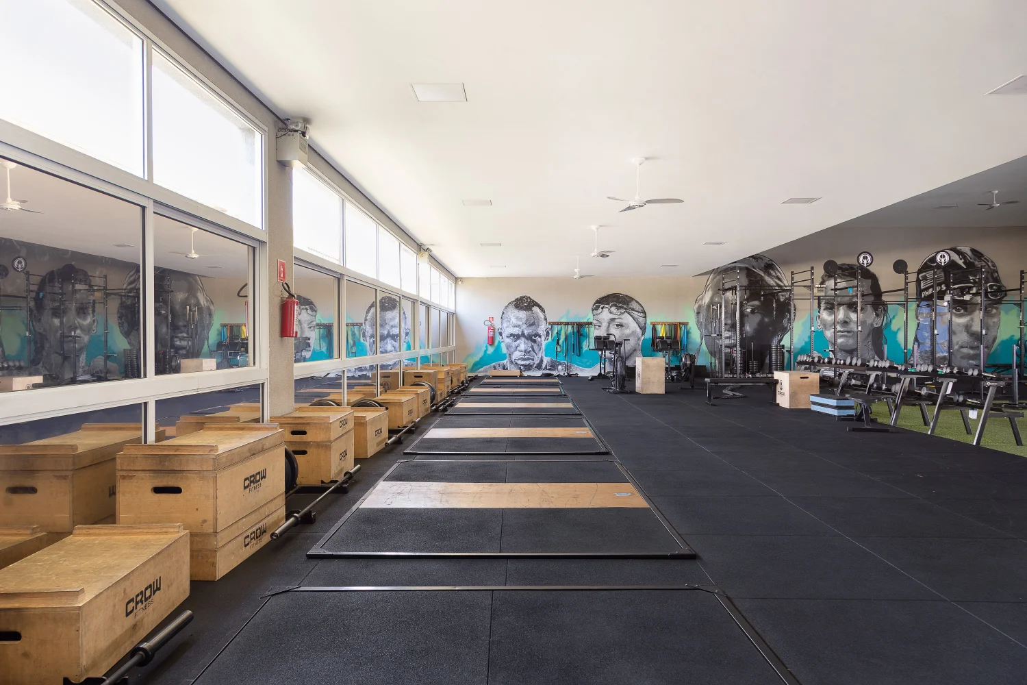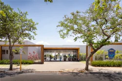 “A fachada é um portal aberto. O conceito 'sem porta principal' convida a comunidade para entrar em todo o complexo esportivo.” Por: Artemis Fontana Arquitetura.