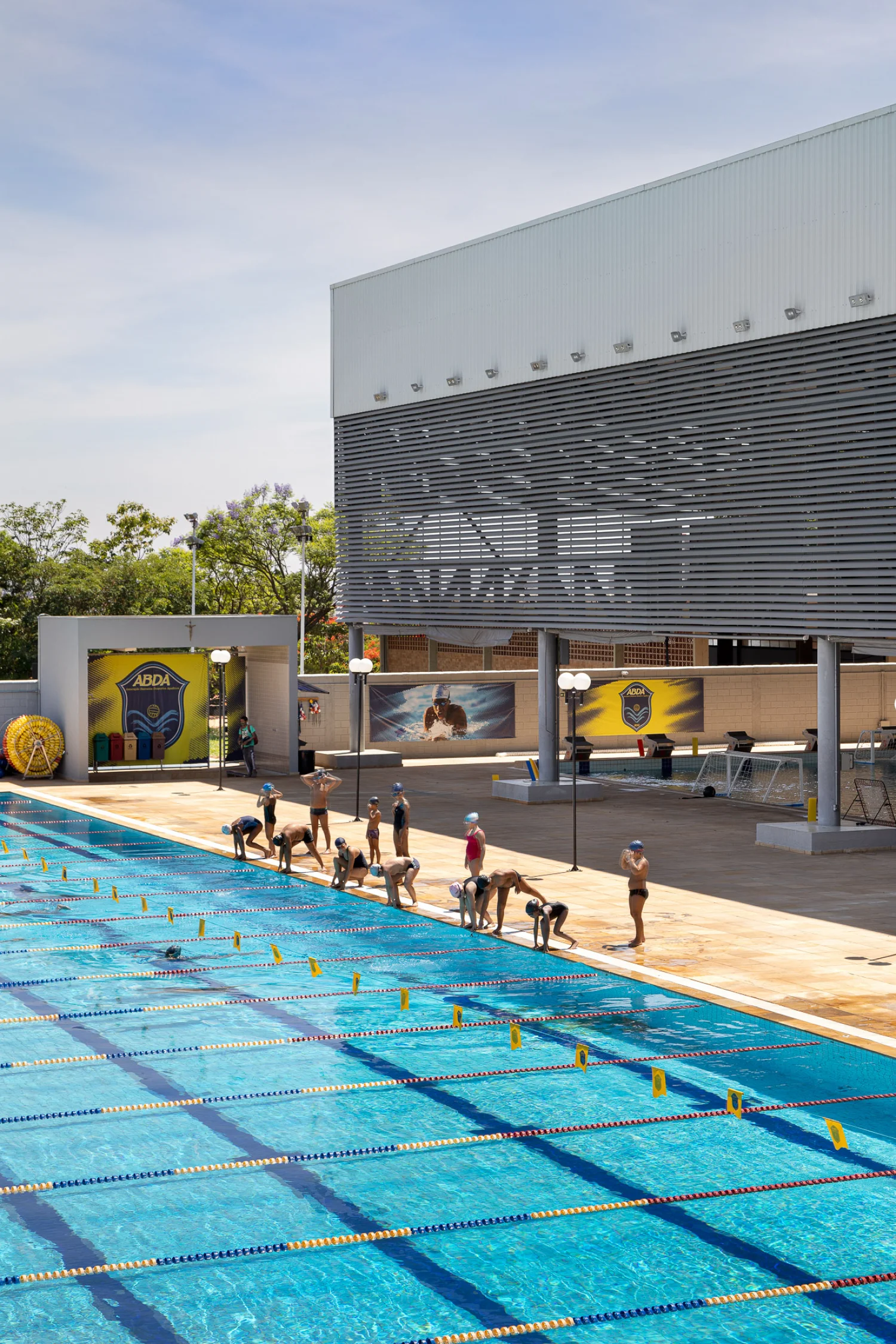 A Associação Bauruense de Desportos Aquáticos (ABDA) consolidou-se como um projeto social sem fins lucrativos que transforma a realidade de mais de cinco mil crianças e adolescentes em Bauru (SP). O que nasceu de forma espontânea em 2010, fruto da visão de um empresário entusiasta do polo aquático e da natação, demandou, em 2014, uma tradução física à altura de suas ambições. O escritório Artemis Fontana foi incumbido de projetar uma estrutura própria e original, capaz de fortalecer a missão da entidade de melhorar vidas através do esporte.